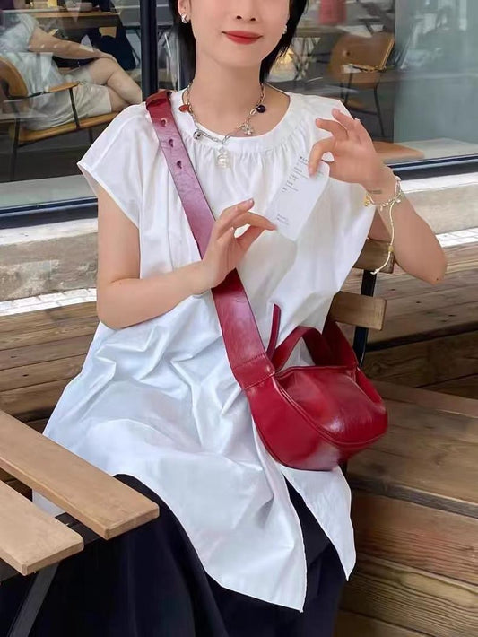 Cherry Red PU leather Half-moon Bag